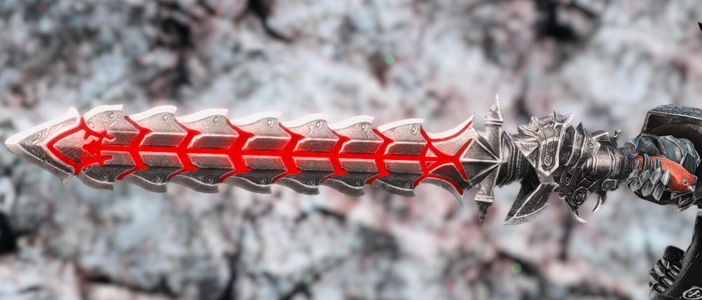 A custom-built serrated gunblade crafted from a metal found deep in the Western Shroud; capable of firing a variety of aether infused cartridges.Tehro'to is exceptionally talented in the use of this weapon in particular, his familiarity with it's design enabling him to wield it to it's utmost potential.